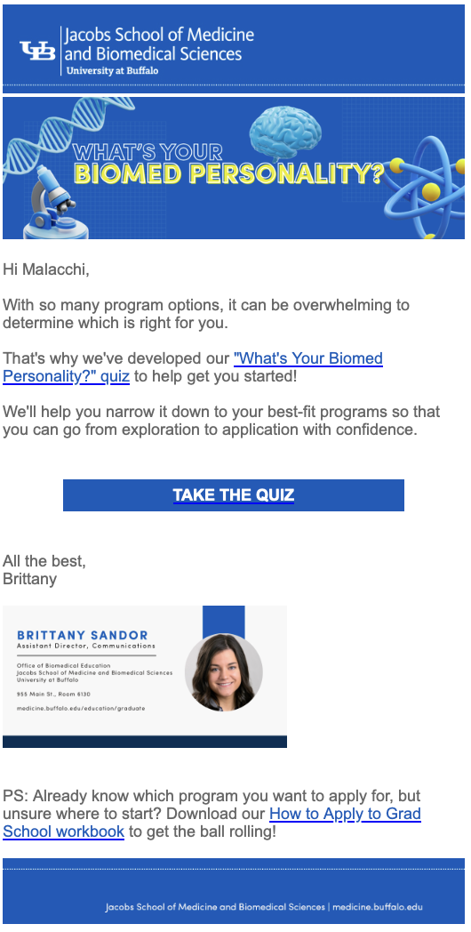 Since 2019, I’ve owned and continuously optimized an email nurture campaign designed to guide prospective students from initial inquiry through application submission.