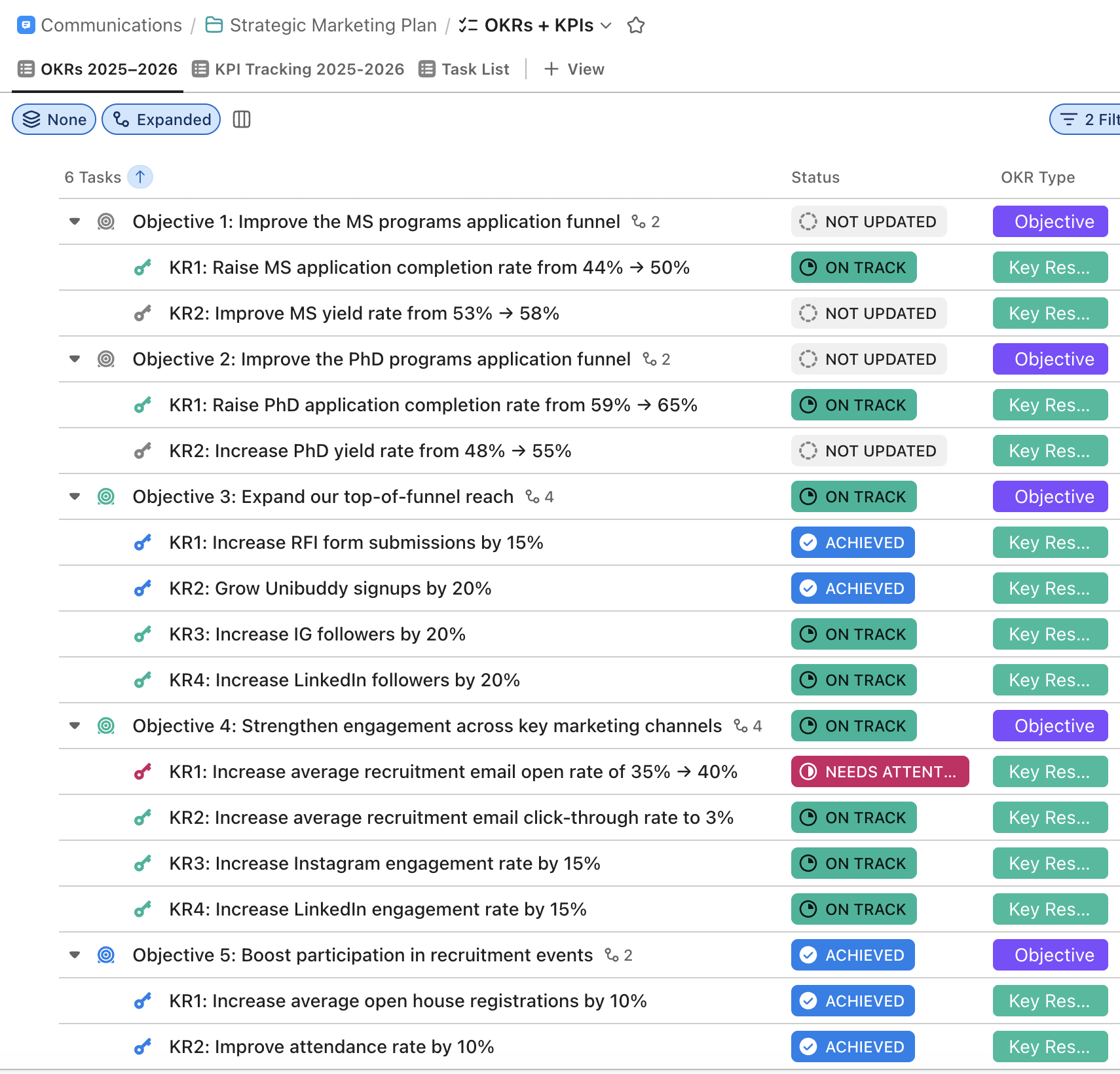 To bring focus and intention to graduate recruitment marketing, I developed and led an annual strategic marketing plan designed to replace reactive execution with data-informed decision making.